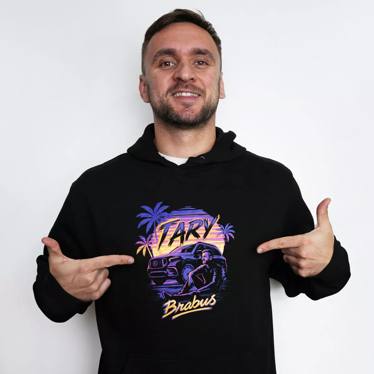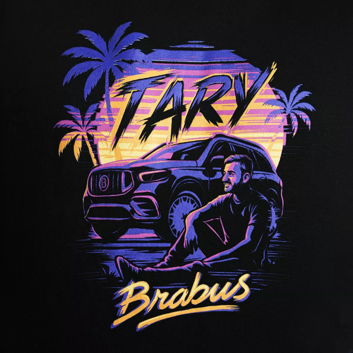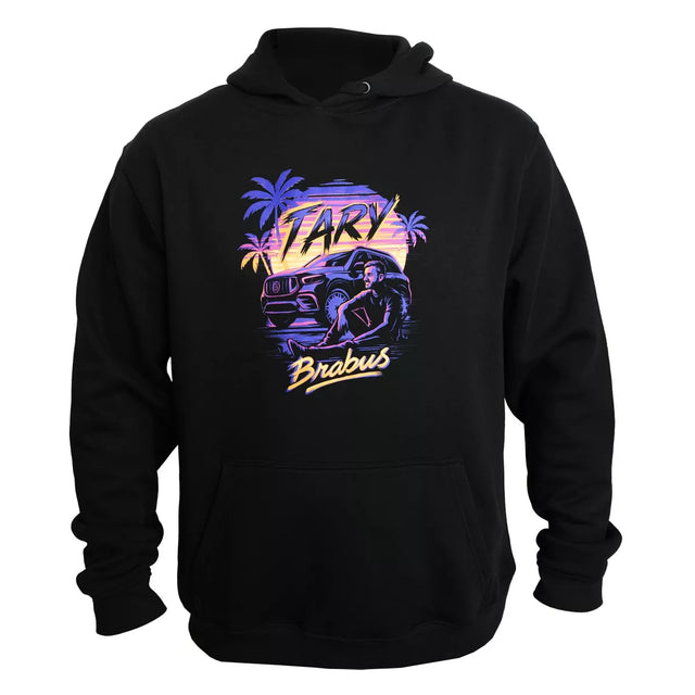 Černá mikina s výraznou grafikou inspirovanou letní atmosférou, západem slunce a silou motoru Brabusu. Jedná se o Taryho oficiální merch.