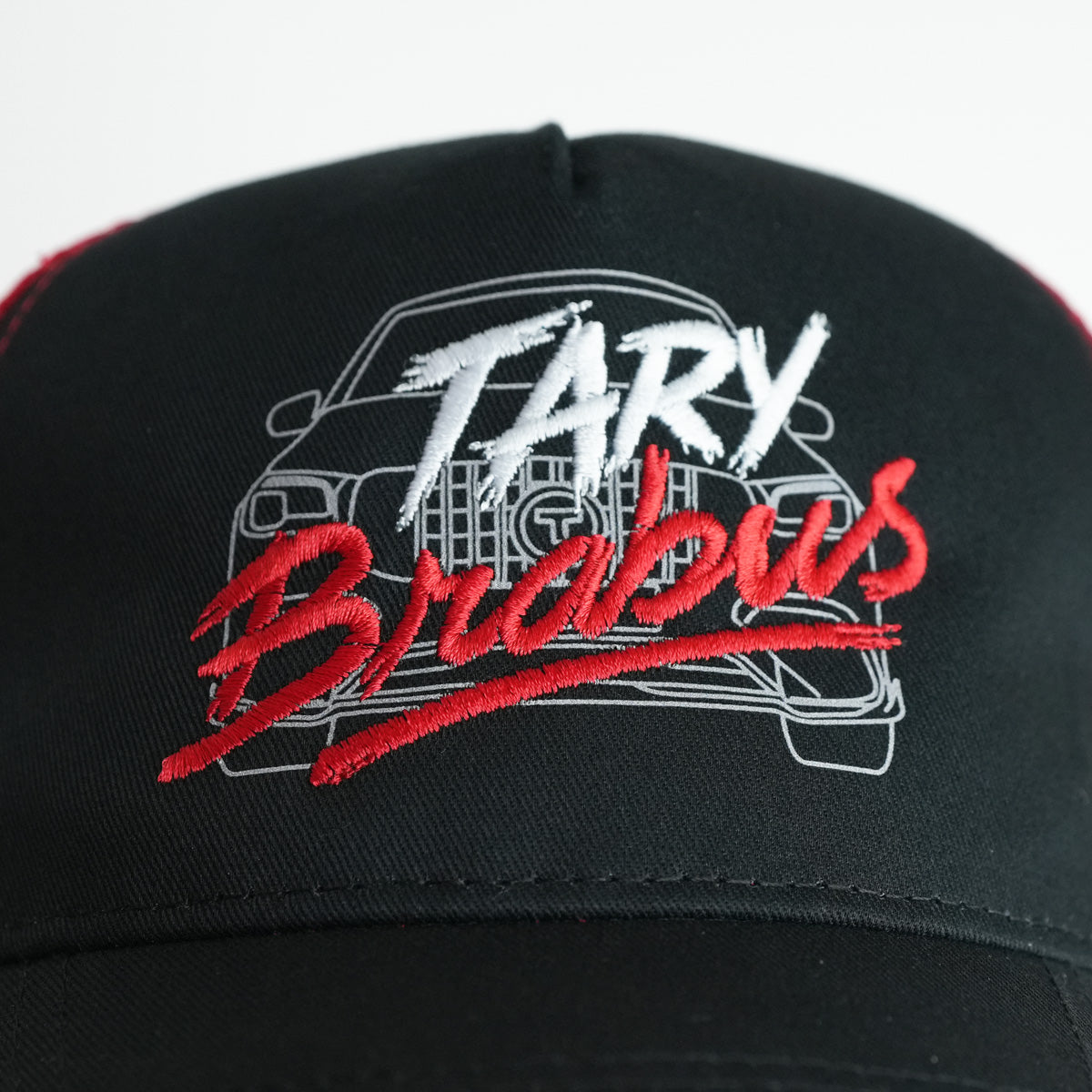Přečíst víceKšiltovka Tary Brabus je stylový doplněk inspirovaný legendárním Taryho autem. Černá trucker kšiltovka s červenou síťkou a výraznou výšivkou Tary Brabus na přední straně okamžitě zaujme.