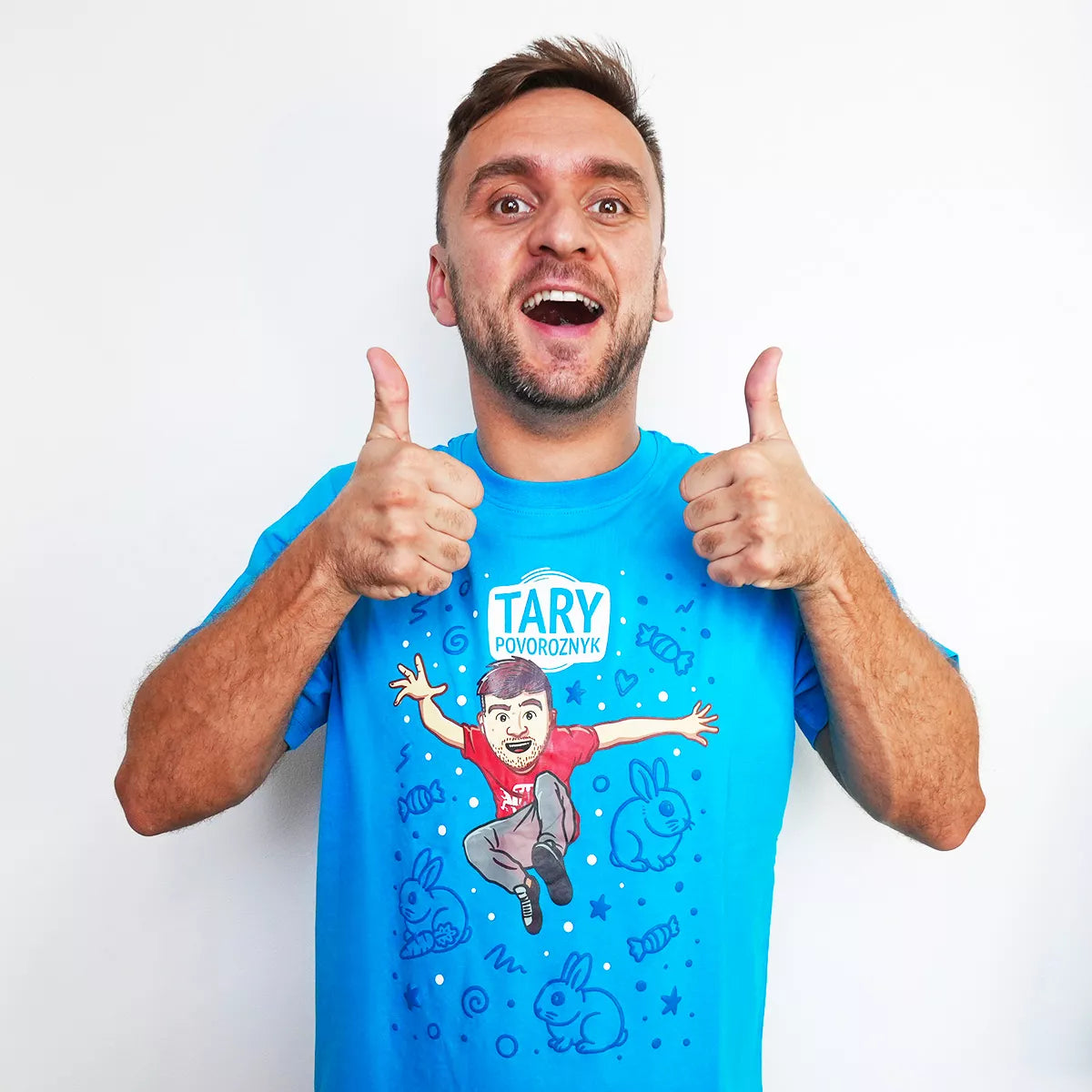 Veselé tričko s motivem Taryho a králíčka Ňufíka plné pohybu, barev a hravé energie. Jedná se o Taryho oficiální merch.