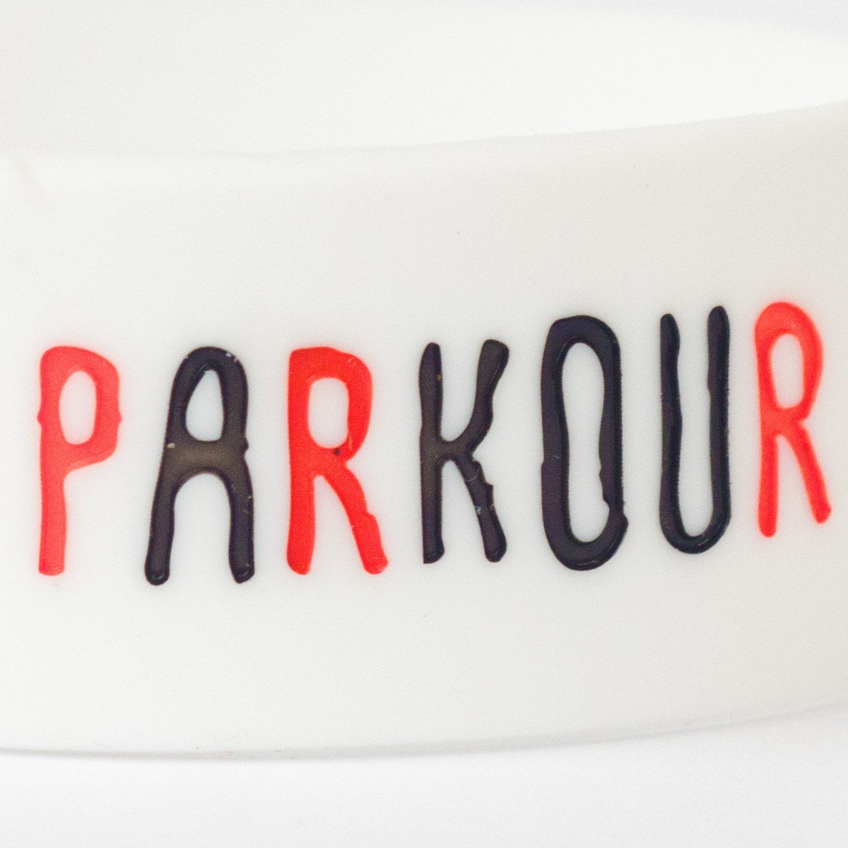 Vyjádřete svou lásku k parkouru s tímto stylovým bílým náramkem Love Parkour!