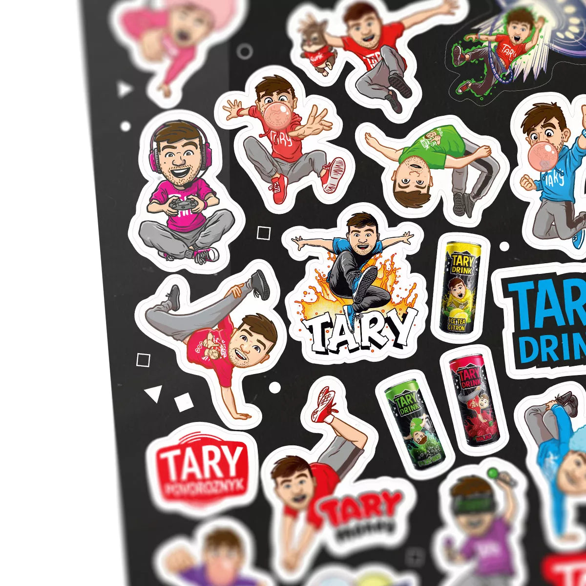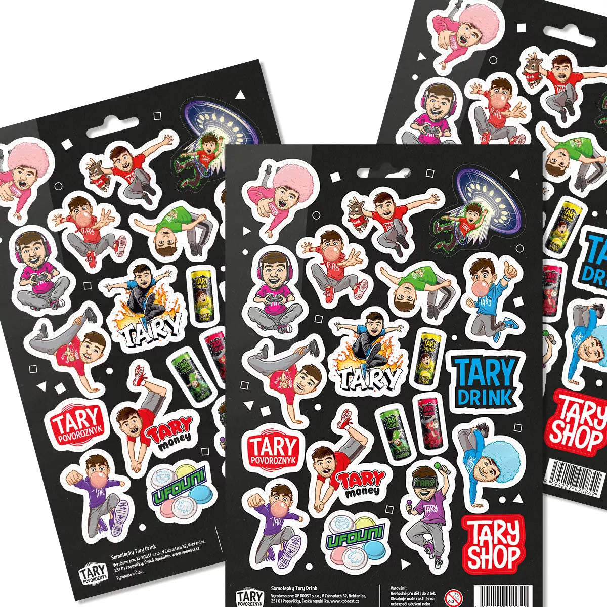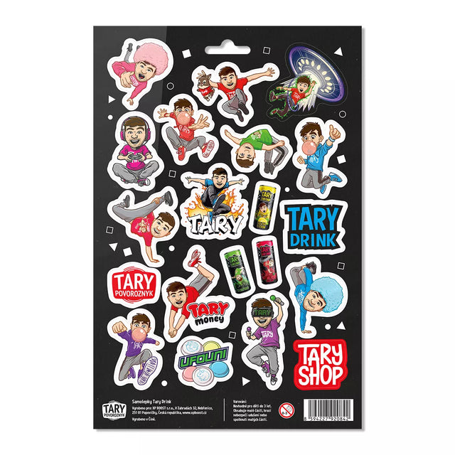 Barevná sada samolepek inspirovaná světem Tary Drinků a Taryho sladkostí. Jedná se o Taryho oficiální merch.