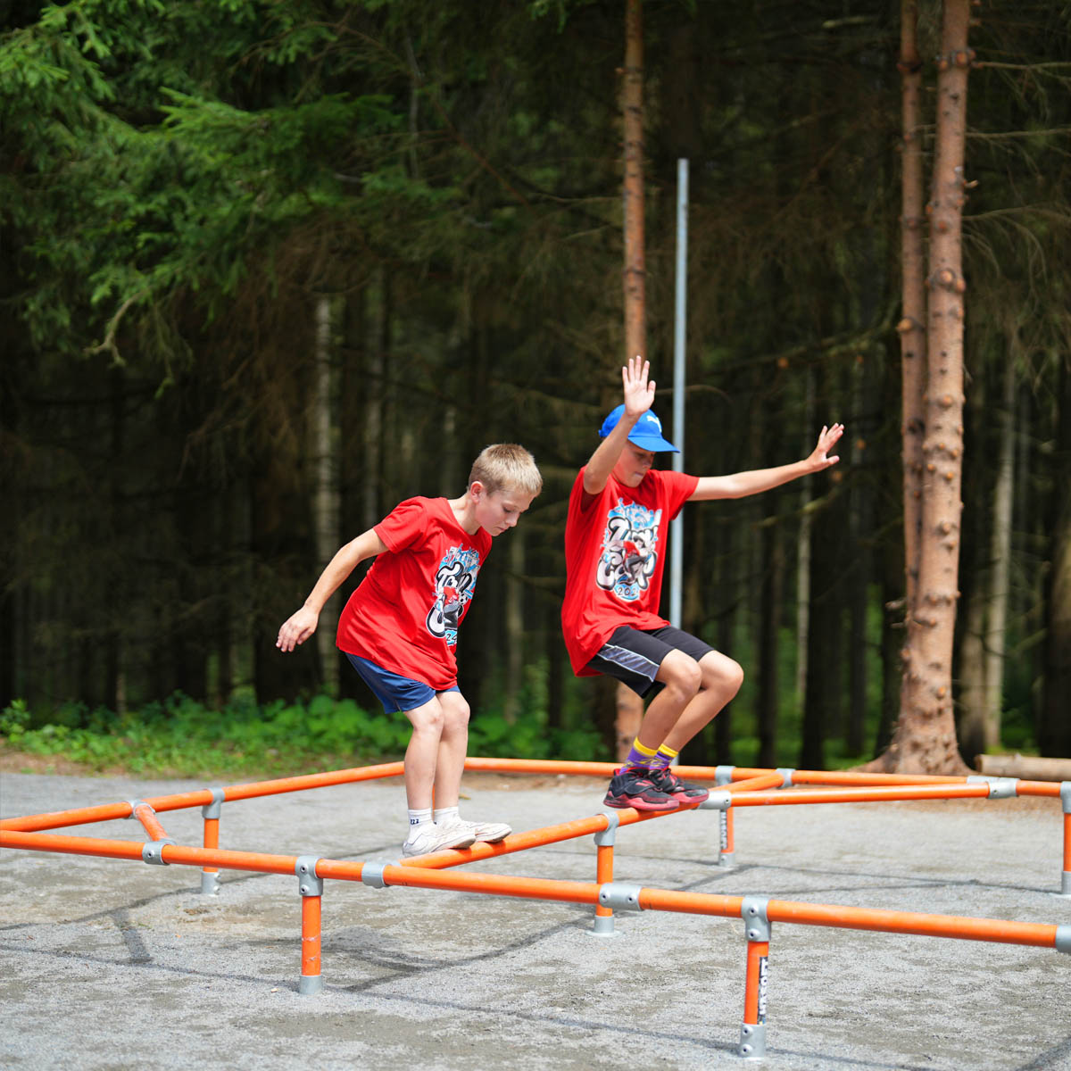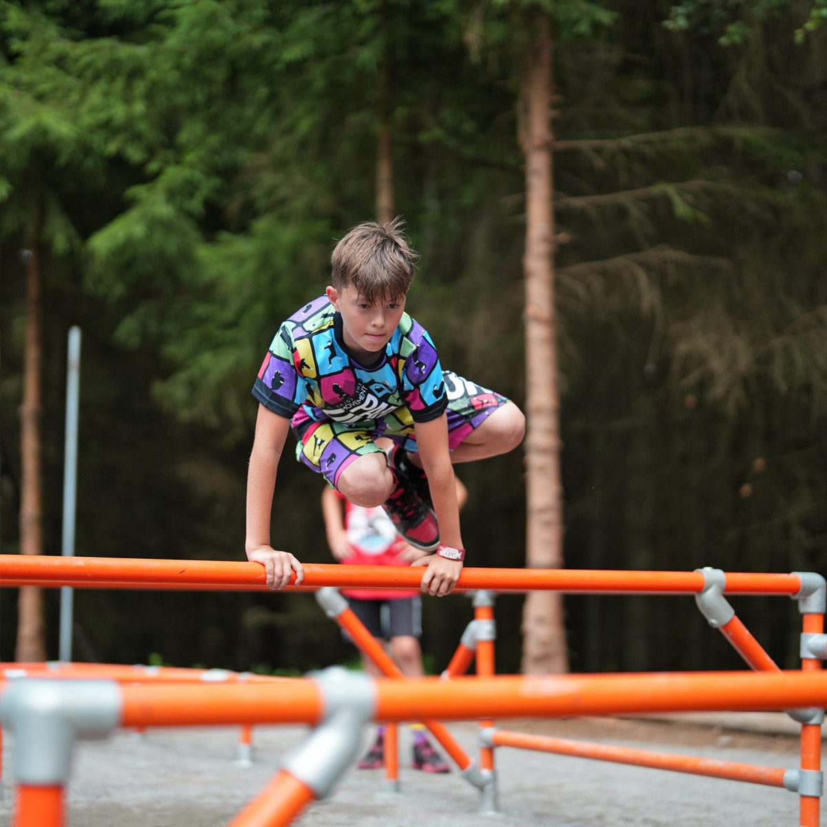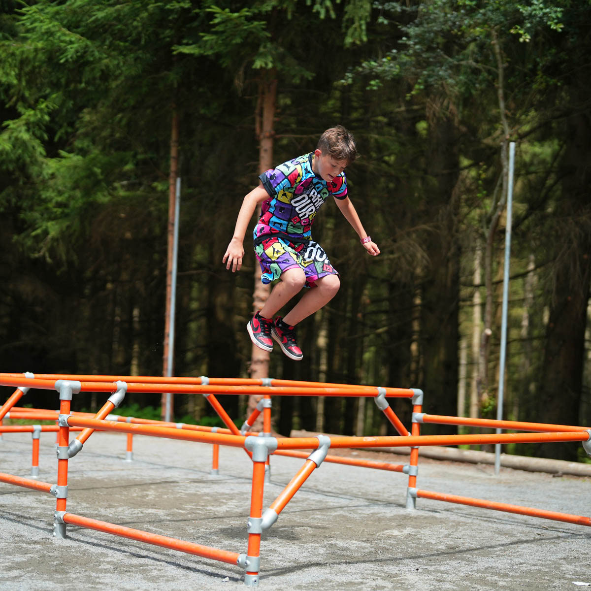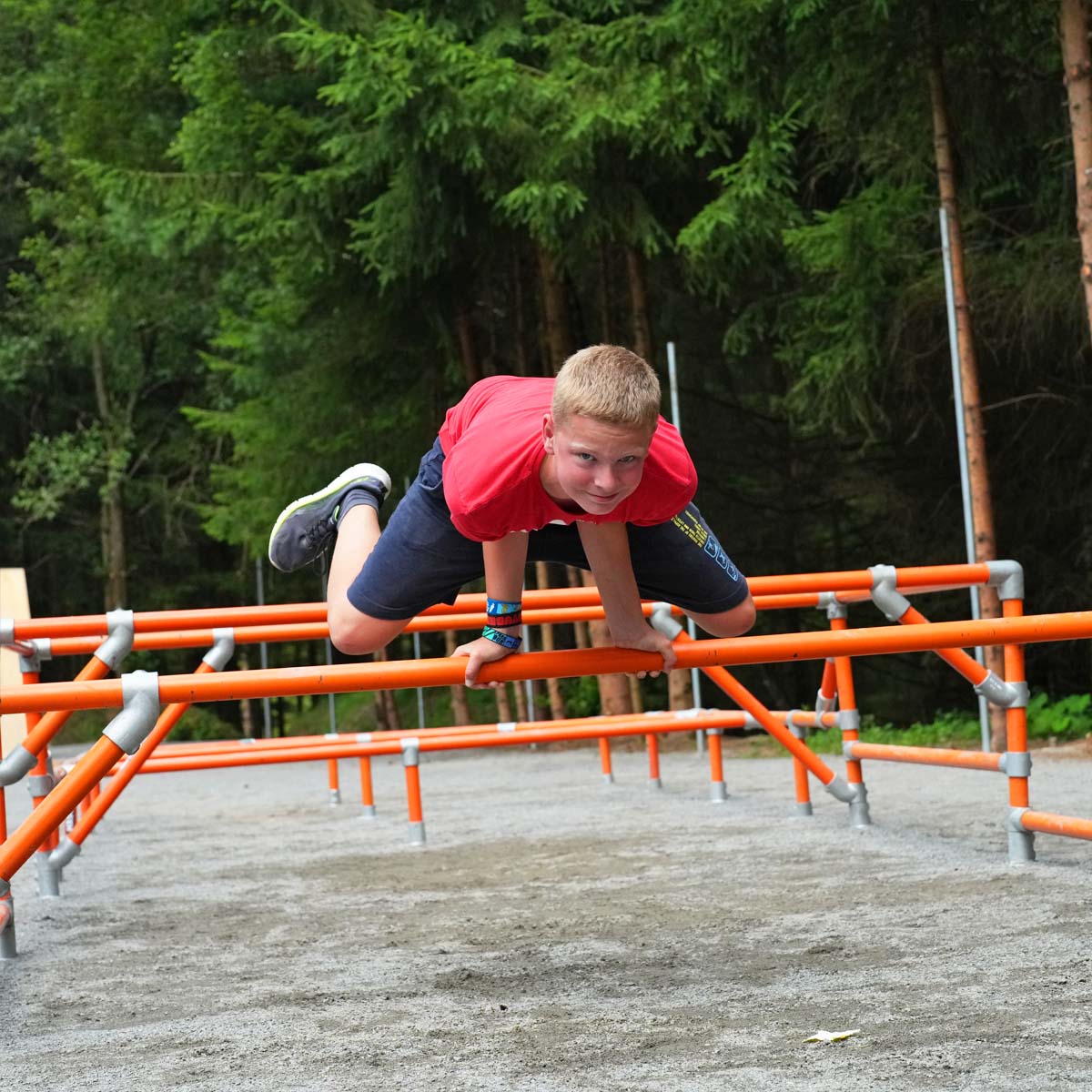 Sestava z trubek a spojek pro trénink parkouru z Tary Campu. Toto lešení bylo používáno pro trénování dětí na Taryho letních Tary Campech.