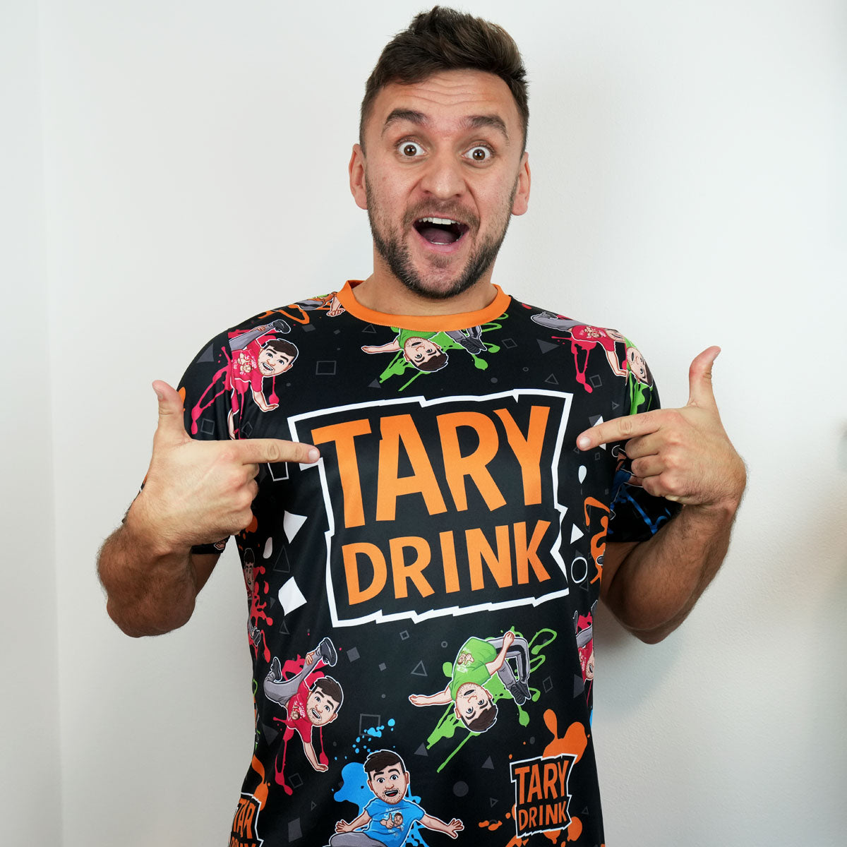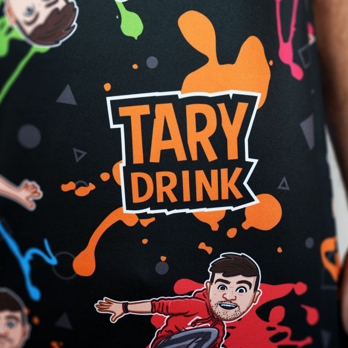 Tohle tričko z oficiální Taryho kolekce tě nenechá zapadnout. Celoplošný potisk s logem Tary Drink a postavami v akčních pózách přináší pořádnou dávku barev, pohybu a jedinečného stylu. Ideální pro všechny, kteří mají rádi výrazný a zábavný vzhled, který má šťávu.