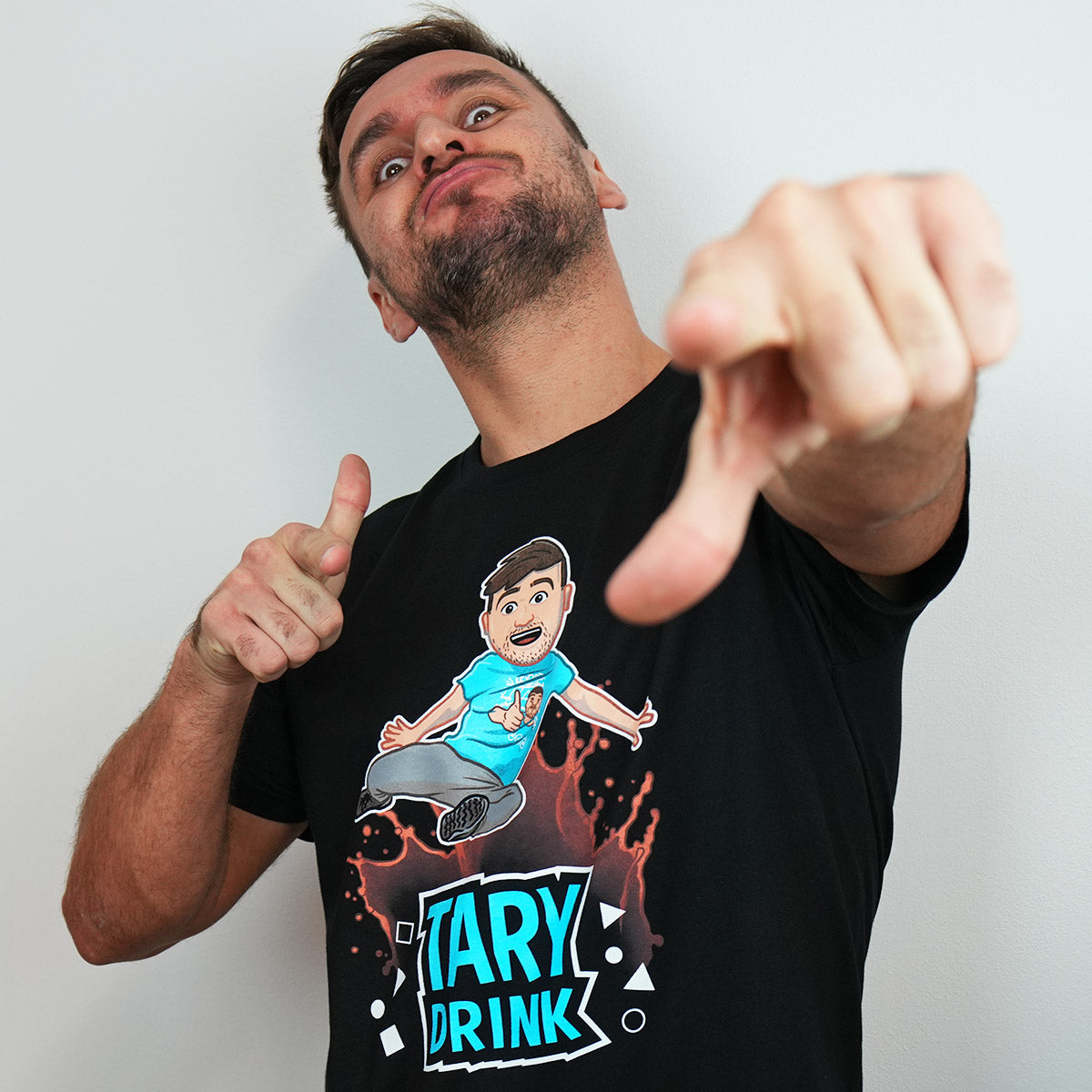 Znáš ho z videí, viděl jsi ho na Instagramu a teď ho můžeš mít taky! Tričko Tary Drink je originální kousek z oficiální kolekce, který tě okamžitě hodí do světa Taryho energie, soutěží a letního osvěžení.