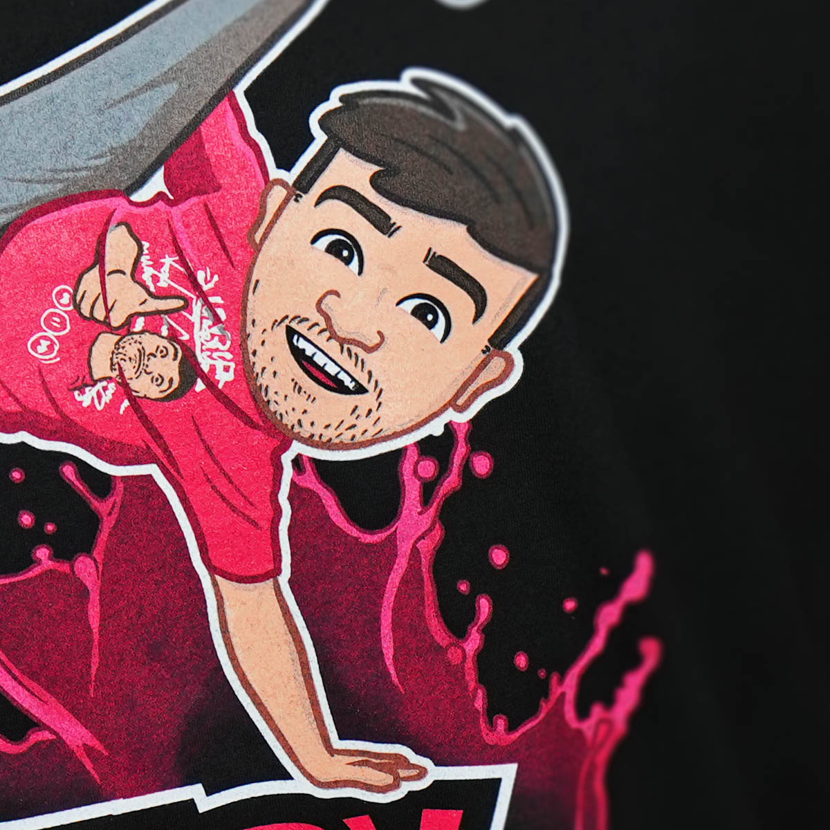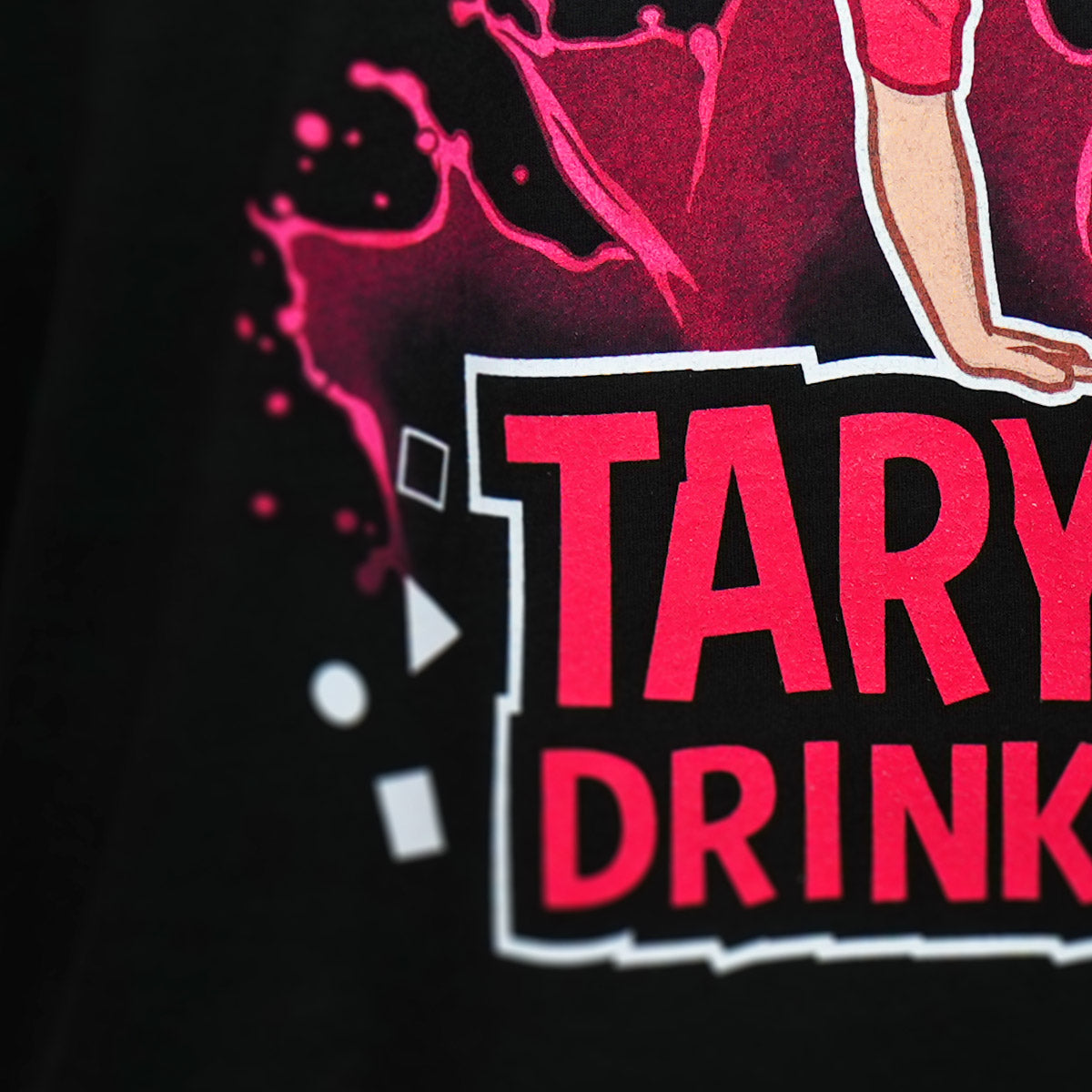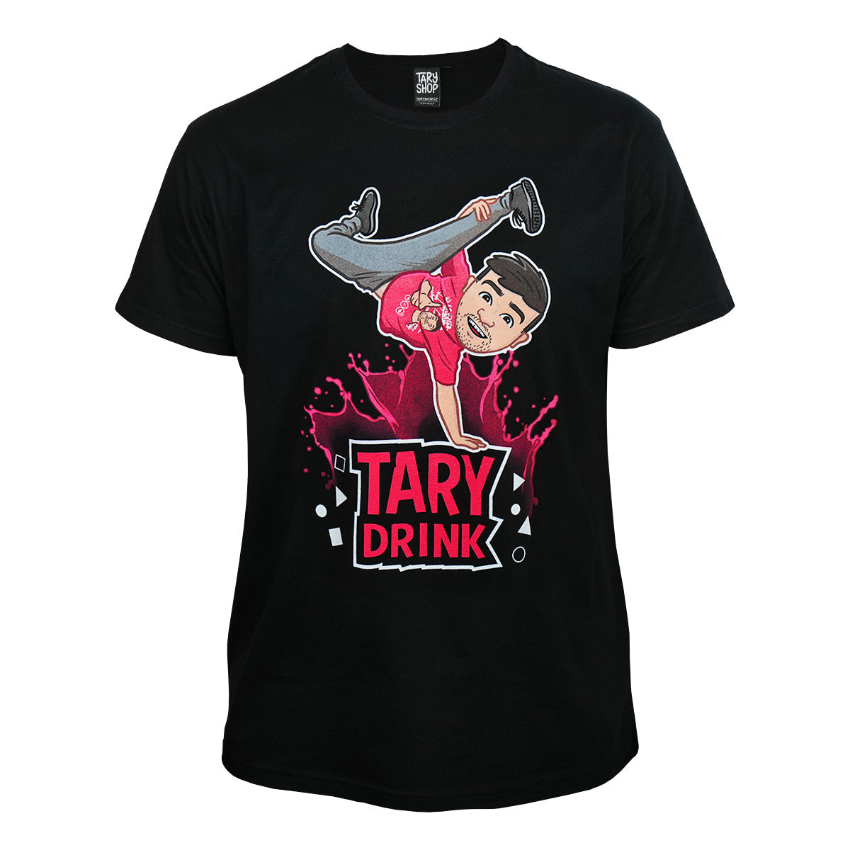 Tohle tričko jsi určitě zahlédl v Taryho videích nebo na jeho sociálních sítích – a teď může být tvoje! Přední stranu zdobí velký barevný potisk s motivem Tary Drinku, doplněný o detail na rukávu a malý potisk na zádech dole. Vše je tištěno kvalitním sítotiskem, takže potisky zůstávají jasné a odolné i po mnoha praních.