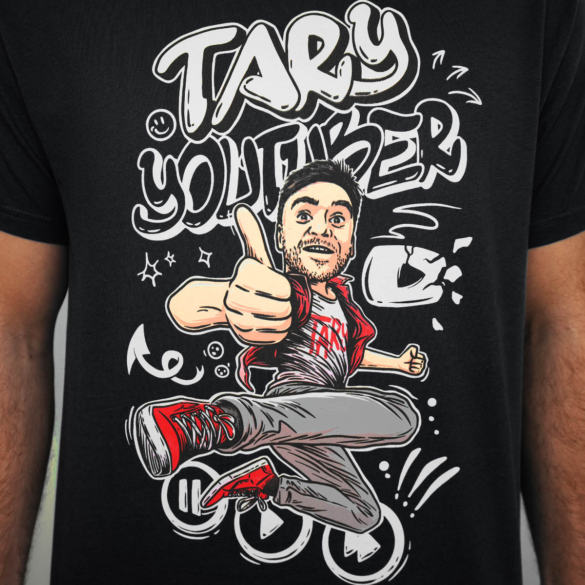 Tričko je prošpikované drobnými detaily v designu, které připomínají Taryho kreativní styl, YouTube svět a vibe, který známe z jeho dobrodružství. Kvalitní sítotisková technika zaručuje, že potisk vydrží i po mnoha praních – takže můžeš tričko nosit pořád dokola bez obav, že ztratí šmrnc.