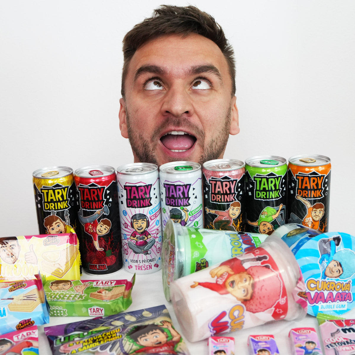 Velký ochutnávkový set plný Tary Drinků a Taryho sladkostí pro celou rodinu nebo pořádnou párty. Jedná se o Taryho oficiální merch.