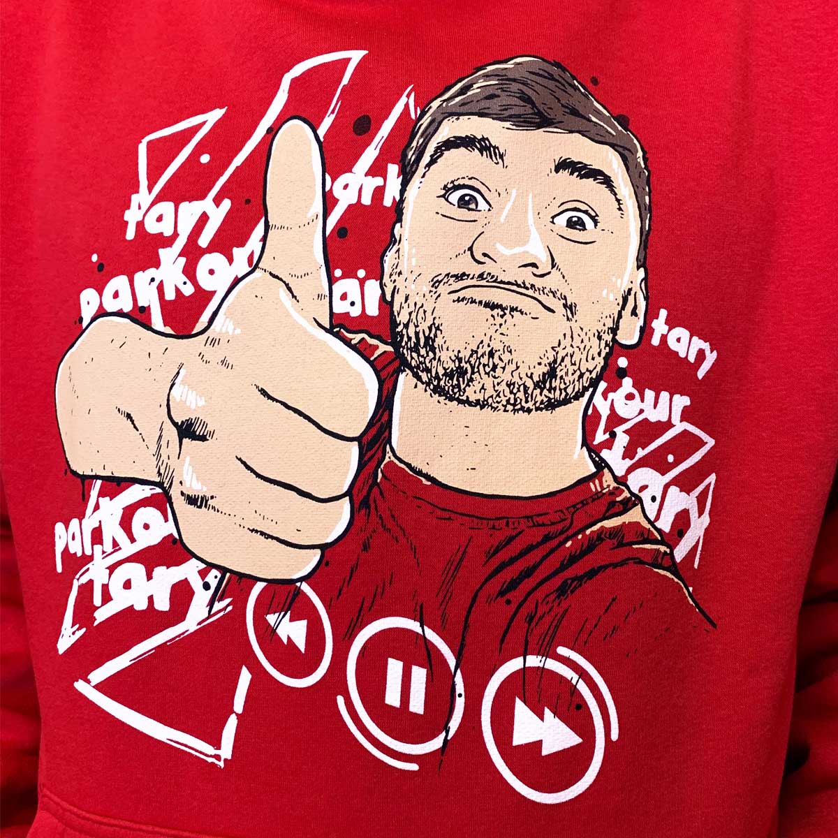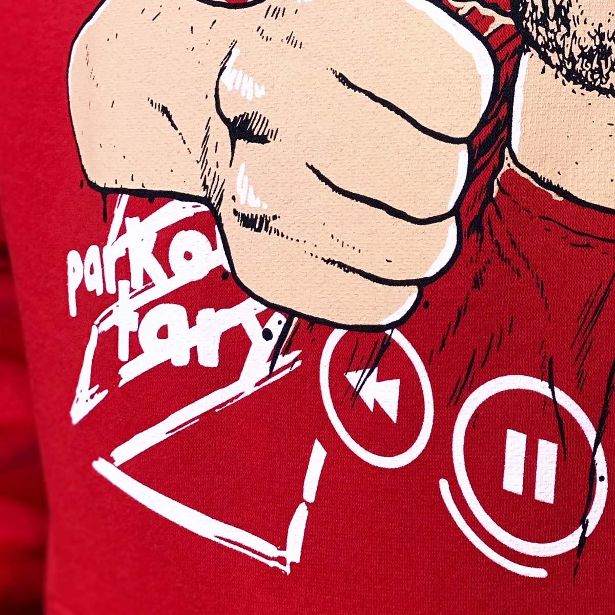 3 potisky: hruď, kapsa, kapuce
